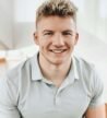 A person stands in a modern art gallery, surrounded by artwork hung on white walls. The gallery features various art pieces including paintings and sculptures. The lighting is bright and evenly distributed, creating a clean and open atmosphere. Plants add a touch of greenery to the otherwise minimalistic space.